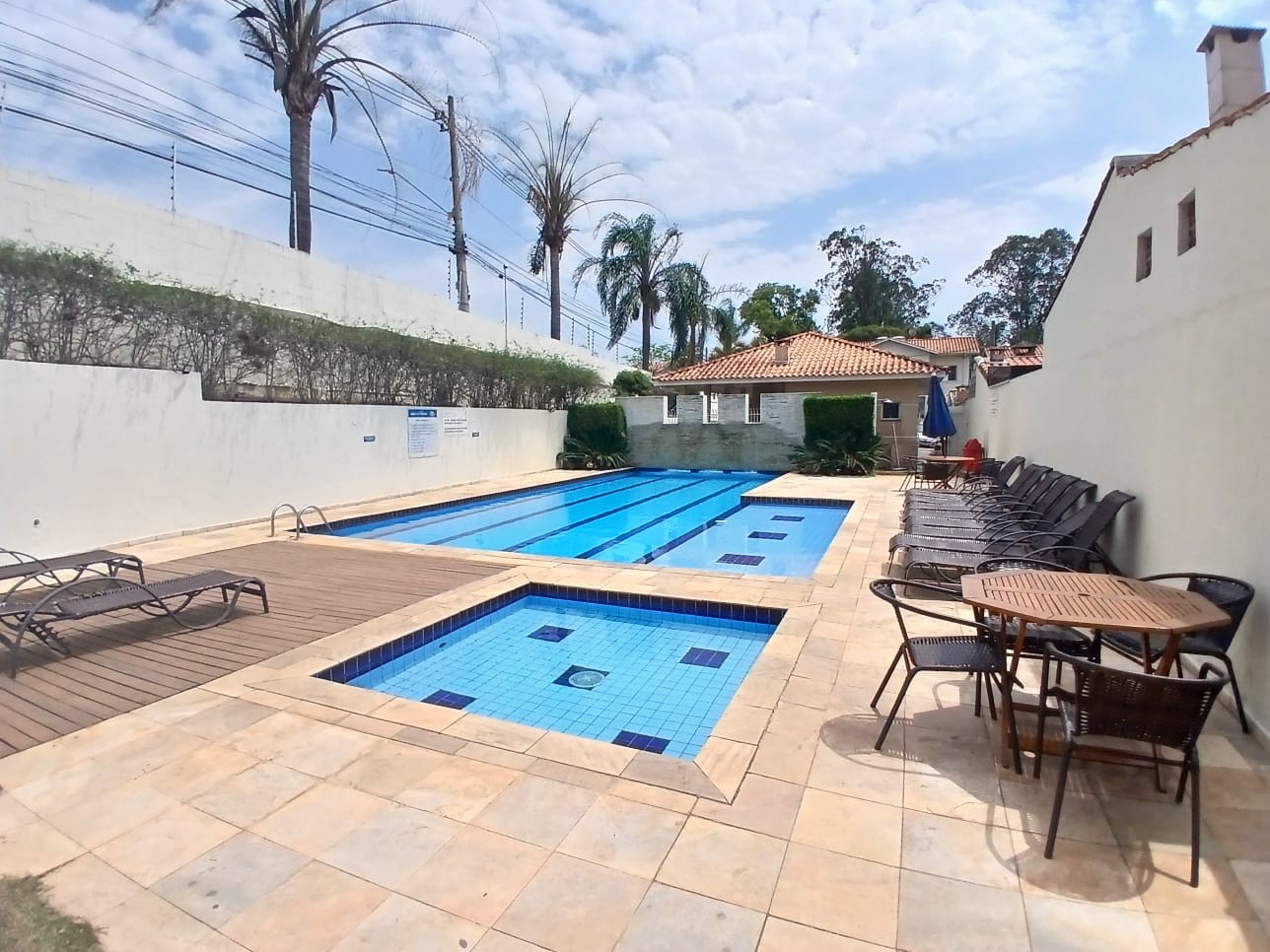 Condomínio com portaria 24h, piscinas, quadra, salão de festas, playground e mini mercado conveniência com auto atendimento.