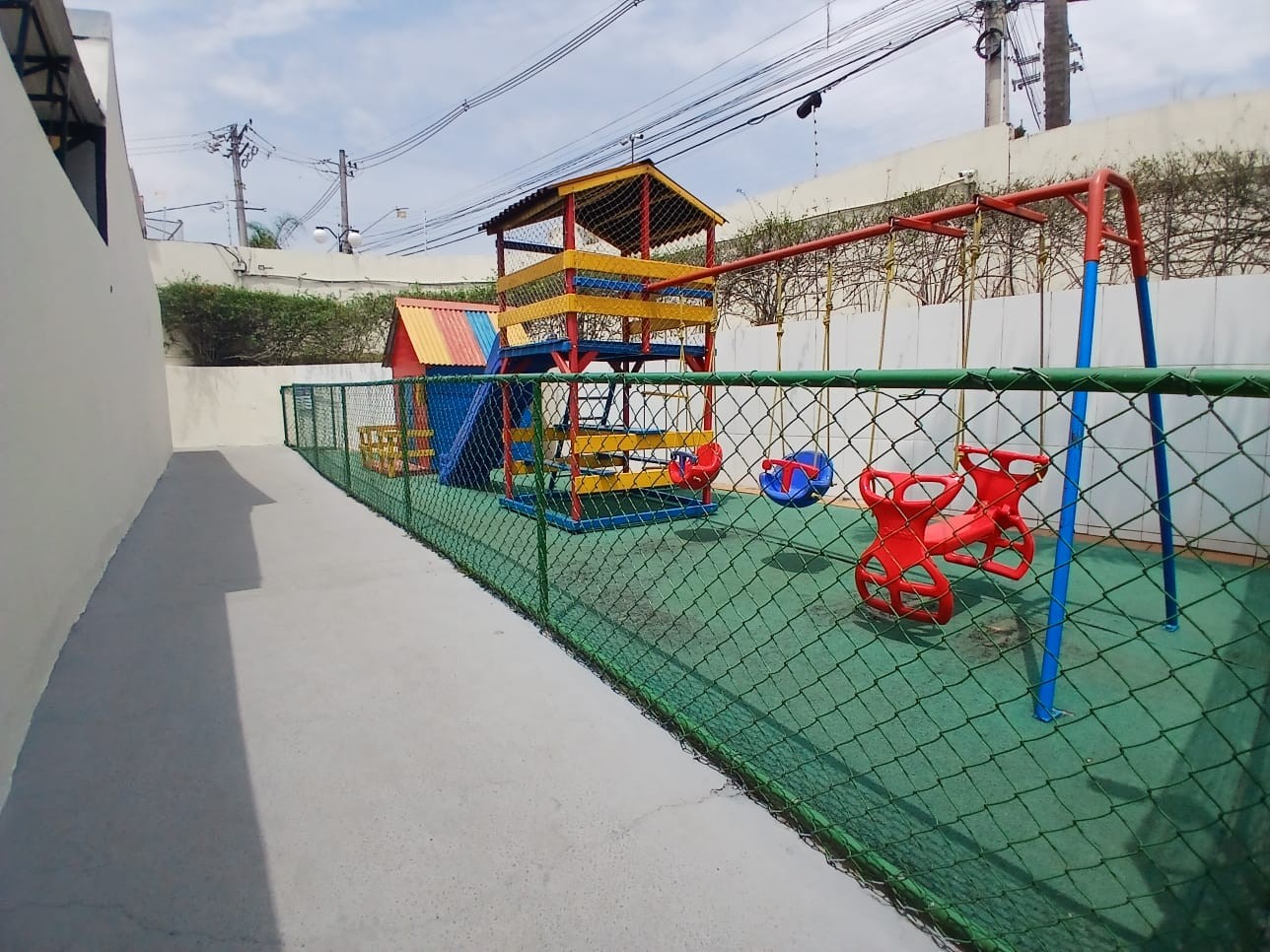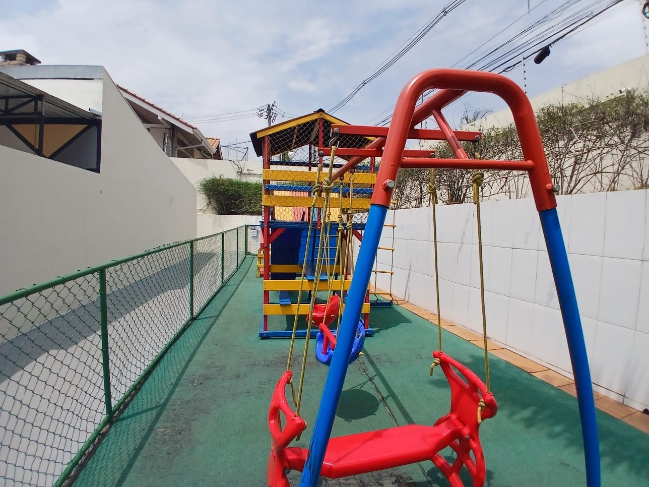 Condomínio com portaria 24h e área de lazer completa: piscinas, quadra esportiva, playground e salão de festas com churrasqueira.