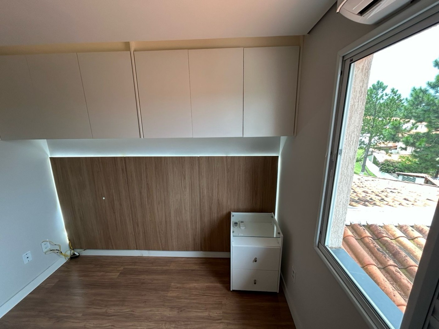 No interior, são três dormitórios, sendo uma suíte equipada com ar-condicionado e armários sob medida. Além disso, há dois banheiros sociais com louças e metais de qualidade, cozinha completamente mobiliada e área de serviço integrada, perfeita para otimizar o dia a dia. A planta inteligente contempla duas salas bem iluminadas — ideal para living e espaço de home office — e ainda um escritório independente, proporcionando versatilidade para quem trabalha de casa. Duas vagas de garagem cobertas garantem segurança e praticidade para sua família.